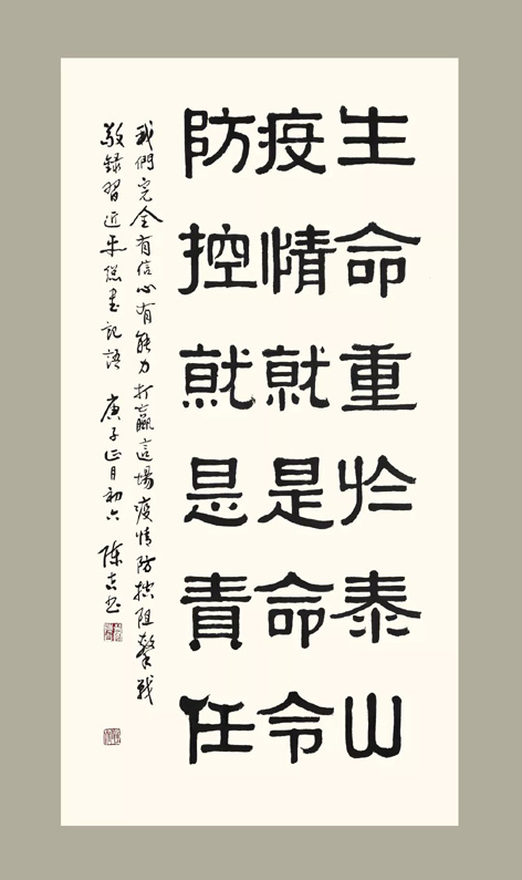 “同氣連枝,共盼春來;“致敬逆行者,戮力送瘟神”;“萬眾一心,共克時艱”;“致敬抗疫一線醫護英雄”;“大愛無疆”;“平安”…… 連日來,福建省政協書畫院的書畫家們拿起手中的畫筆,用藝術的筆觸,捕捉感人畫面,飽含激情地創作出一幅幅書畫作品,描繪“抗疫”英雄的壯舉,抒發對感染者的牽掛,感受一方有難八方支援的溫暖,表達堅決打贏疫情防控阻擊戰的信心。