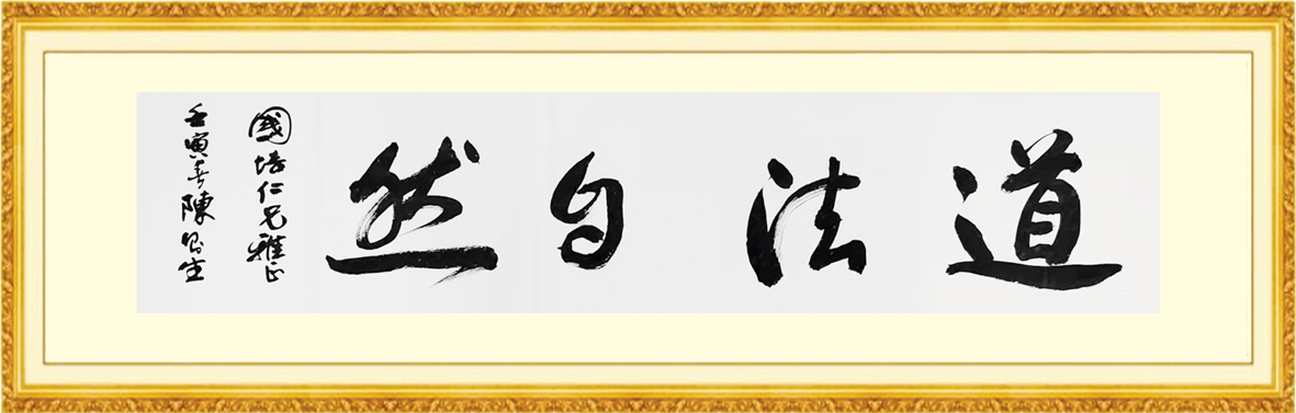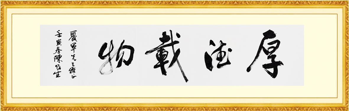 書法家的主題往往都有豐富的文化內(nèi)涵,其言簡意賅,字意深遠(yuǎn),富有哲理。陳則生的“厚德載物”“道法自然”書法作品也不另外。“厚德載物”是華夏民族精神的重要內(nèi)涵的一種表達(dá)。該詞出自《易傳》的“天行健,君子以自強(qiáng)不息;地勢坤,君子以厚德載物”一語,意思是指君子的品德應(yīng)如大地般厚實(shí)可以承載萬物。自強(qiáng)不息、厚德載物是為人們普遍認(rèn)同的傳統(tǒng)民族精神。