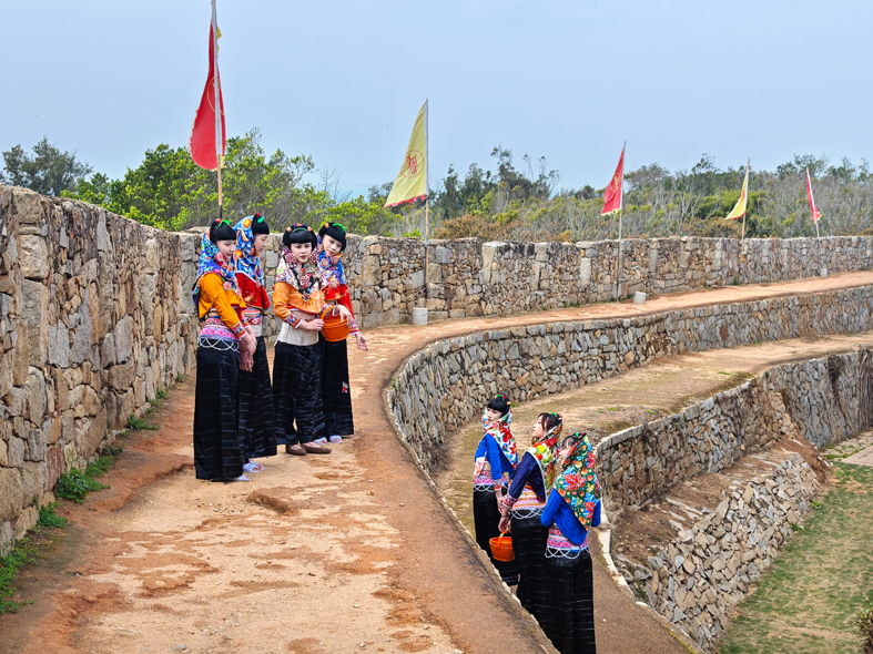 惠安女作為福建三大漁女之一,是福建泉州惠安縣等海邊的一群特殊的民間風情女人,以勤勞智慧、敢拼敢干而聞名?;莅才椏梢杂昧鱾饔诿耖g的一句順口溜來概括:“封建頭,民主肚,節(jié)約衣,浪費褲。”惠安女的頭部總是嚴嚴實實裹著頭巾,卻大方地露出肚臍,上衣短小,褲管寬大,所以稱節(jié)約衣和浪費褲。惠安女服飾有著幾百年歷史、入選首批國家級非物質文化遺產名錄,她們頭戴花色頭巾,身著短上衣、寬筒褲,銀腰帶束出婀娜身姿,五彩斑斕的裝扮與海天相映成趣,不僅是閩南傳統(tǒng)女性的代表,更承載著深厚的地域文化底蘊。在閩南的碧海藍天下,惠安女宛如靈動的文化符號,以其獨特的服飾與堅韌的精神,在歲月長河中熠熠生輝。此次專程奔赴惠安縣崇武鎮(zhèn),我懷揣著對這份獨特風情的向往與敬意,希望用鏡頭定格惠安女最真實、最鮮活的模樣。拍攝過程中,我穿梭于漁村街巷,聚焦她們織網、勞作、休憩等生活場景,精心選取 12 幅作品,試圖從不同角度展現她們風情萬種的精神面貌,讓更多人了解惠安女,了解惠安女服飾的文化,同時了解服飾背后堅毅勇敢的“惠女精神”。