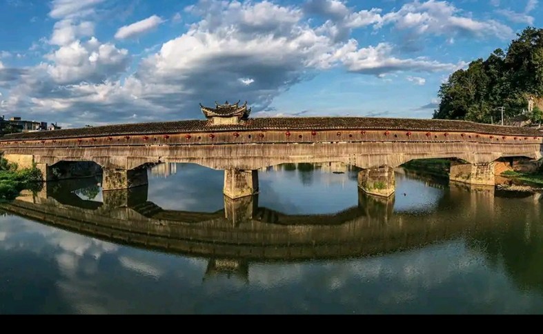 神奇五福橋,以其獨特的工匠技巧、視覺藝術、文化價值,融進了大地阡陌,融進了百姓心田。悠久的鳥圖騰留下了,四只豐腴的神鳥,一如既往浮在河面,呢喃細語中,快樂地馱著長長的廊橋,目送兩岸鄉親福來福往,一路暢行,贈予游人一片片神奇的羽毛,捎去一個個飛翔的美夢。