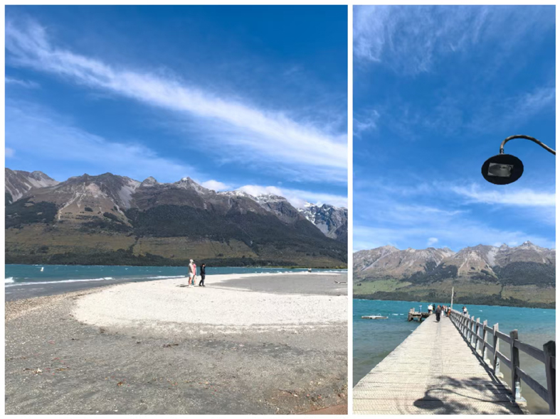 駛過(guò)一彎又一彎蜿蜒的山路,天地忽然豁然開(kāi)朗,滿眼都是瓦卡蒂普湖的絕色風(fēng)華。腳下紅褐色的灘涂蜿蜒如八卦,細(xì)波輕漾,像遺落人間的絲絨錦被;垂柳斜倚水岸,枝椏輕搖,風(fēng)里藏著南阿爾卑斯山的清冽,也藏著《指環(huán)王》取景地里,中土世界的悠遠(yuǎn)夢(mèng)境。